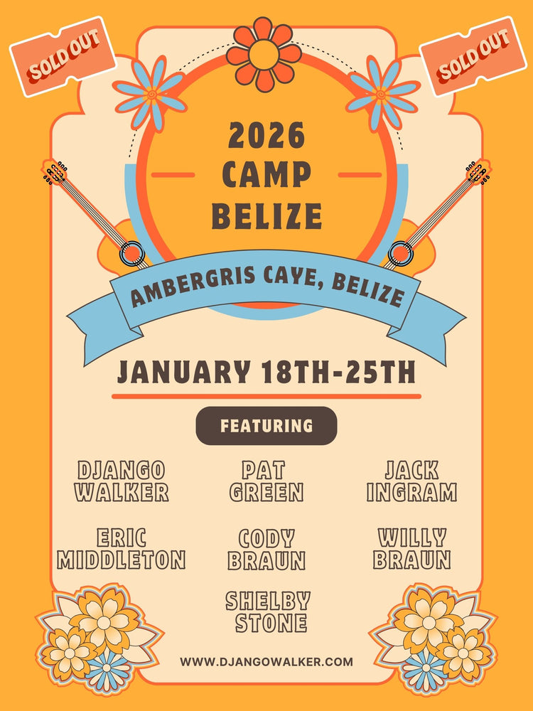 Camp Belize will kick off Sunday, January 18, 2026 with a meet and greet party at the famous Palapa Bar, and on Tuesday the 20th, Django Walker will take the stage for the first of several concerts scheduled that week. This year Django has added several friends to join him at Camp Belize to ensure an amazing fan experience.